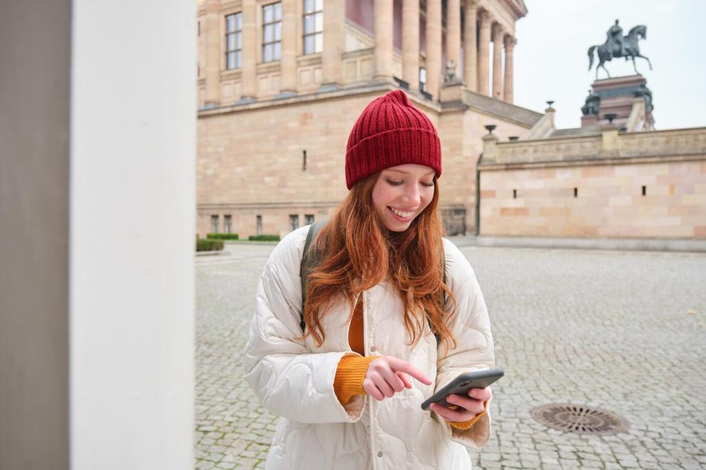 Joggerinnen ziehen Schleifen, Botschaften blitzen durch Bäume, alte Alleen erzählen von Gestern. Manchmal riecht es nach Regen, manchmal nach Glück. Welche Ecke beruhigt dich sofort? Teile deinen Pfad und abonniere, wenn du mehr grüne Kapitel lesen möchtest.